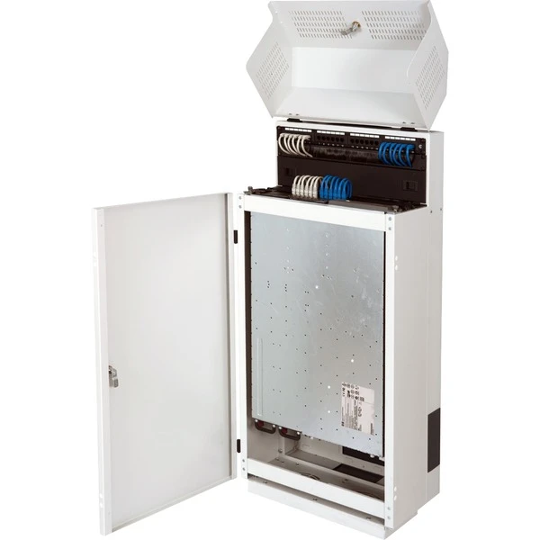 | Feature | Zwei separat abschließbare Bereiche der Fronttür, oberer Bereich mit 4HE horizontalem und 6HE vertikalem 483 mm (19“)-Bereich, stabiles geschweißtes Gehäuse, Bodenteil standardmäßig mit Lüftungsblech, optionaler Lüfter verfügbar | ||