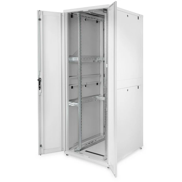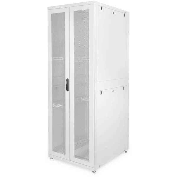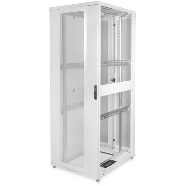 Die DIGITUS Serverschrank Unique Serie wurde für die sichere Unterbringung von Server-Equipment designet und entwickelt. Die Schrankserie ist ausgereift, das führt zu einer optimalen Leistung aus Qualität und Mehrwert. Jeder Schrank ist perfekt konzipiert, benutzerfreundlich in punkto Anwendung und ästhetisch im Aussehen. Die Unique Serie ist in vier Größen erhältlich, von 26 Höheneinheiten bis zu 47 Höheneinheiten. Zur Auswahl bei der Schrankbreite stehen 600 mm oder 800 mm, die Tiefe beträgt 1000 mm. Die Unique Serie ist ideal für kleine und mittlere Serverräume bis hin zu Multi-Data Center Installationen. Der Schrank besteht aus einer modularen Rahmenkonstruktion, die Robustheit bietet. Wesentliche Vorteile der Schrankserie sind die Luftzirkulation (hohe Perforation von 63%) und das Kühlmanagement (Belüftung). Die Unique Serie sorgt für einen einfachen Zugang zu den Komponenten mittels Schnellverschluss-System für die Seitenwände sowie für Vorder- und Rücktür. Jeder Schrank verfügt über zwei Sätze robuster 483 mm (19″)-Profilschienen, die in der gesamten Tiefe des Schrankes angepasst werden können.Art.-Nr.: 1819977