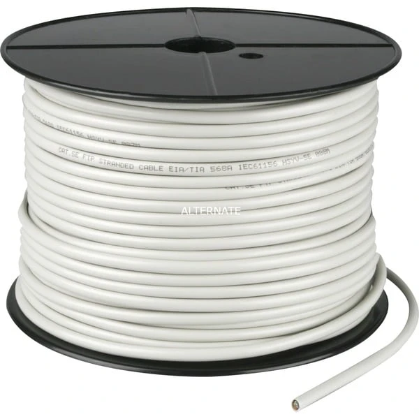 Rolle mit 100 Meter Patchkabel ohne Stecker (Kabel kann passend zugeschnitten werden), geeignet zum Verbinden von Computern mit einem Hub bzw. Switch innerhalb eines 10/100 Mbit Ethernet Netzwerkes (auch geeignet für Gigabit-Ethernet über Kupfer), oder zum Anschluss eines DSL-Modems an den Computer. Einfach geschirmt (FTP)Art.-Nr.: 73055