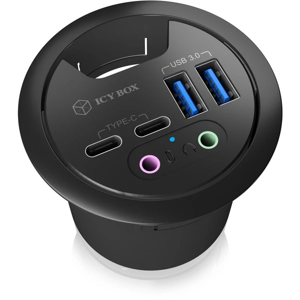 Der IB-HUB1403B ist als für Bohrungen in Schreibtischen (60 mm) vorgesehen. Es kann werkzeuglos in vorgebohrte Löcher eingebaut werden und bietet ausreichend Platz für mehrere Kabel. Der IB-HUB1403B dient als USB Hub als auch als Kabeldurchführung für weitere Kabel auf dem Tisch oder für Maus und Tastaturkabel.Art.-Nr.: 1523387