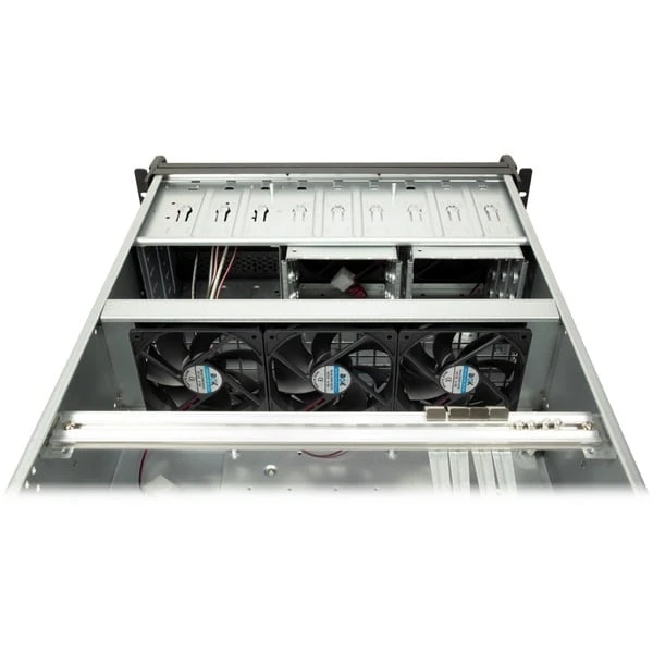Das Inter-Tech 4U-4129L ist ein Rack im 4HE Format mit langer Einbautiefe (695 mm). In der Front befinden sich zwei herausnehmbare Laufwerkskäfige mit integrierten 120-mm-Lüftern, die jeweils Platz für bis zu 5x 3,5″ Festplatten bieten, deren Montage schraubenlos erfolgt. Pro Laufwerkskäfig lassen sich problemlos 3x 5,25″ Wechselrahmen verbauen, die einen einfacheren Zugriff auf die Festplatten gewähren (optional erhältlich). Fünf weitere Lüfter im Mittelsteg und auf der Rückseite sorgen zudem für eine optimale Kühlung des gesamten Systems.Art.-Nr.: 1802729