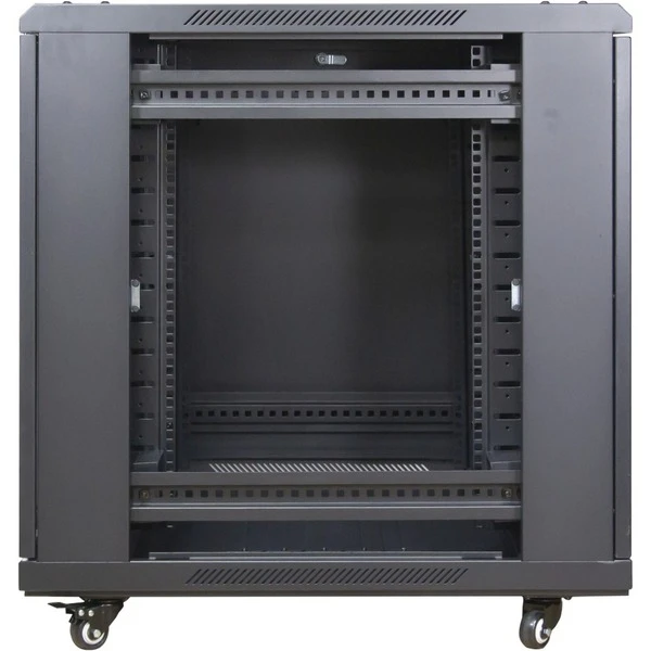 | Zubehör | vorhanden | Rollen (vier Stück, zwei mit Sperren), Nivellier-Standfüße (vier Stück), Schraubenset, 20x Montageschrauben und Käfigmuttern, zwei Erdungskabel für die Türen, zwei Kabelkanäle über die gesamte Bauhöhe, Aufbauanleitung (Englisch, Deutsch zum Download) | |